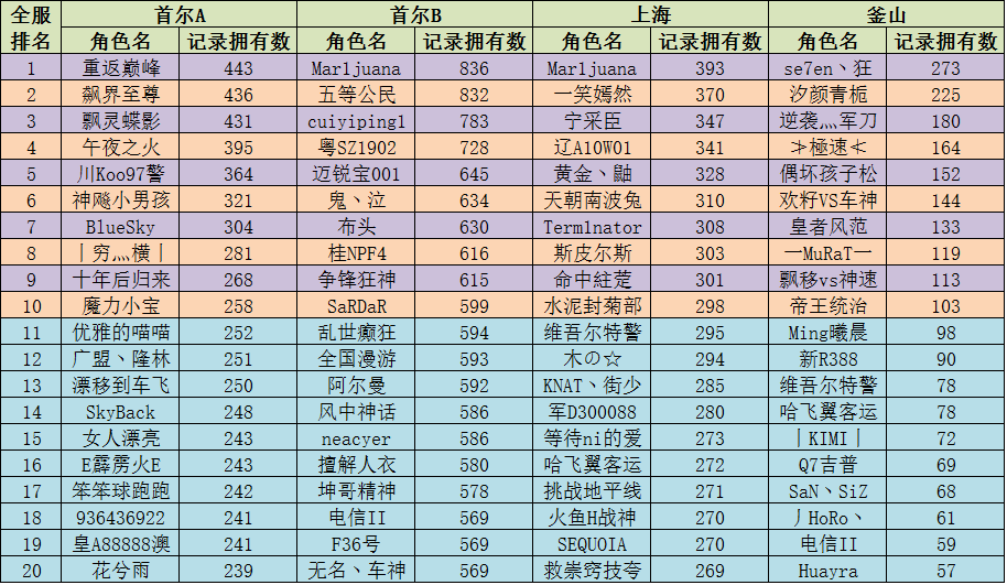 数据来源:8月9日12:00:00-8月26日11:00:00,附件为全服前二十的朋友们,你离入围还有多条条记录呢?数据不作为最终评选名单,仅供参考。