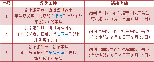 单个服务器中单支车队,最多可对应1项获奖条件;
